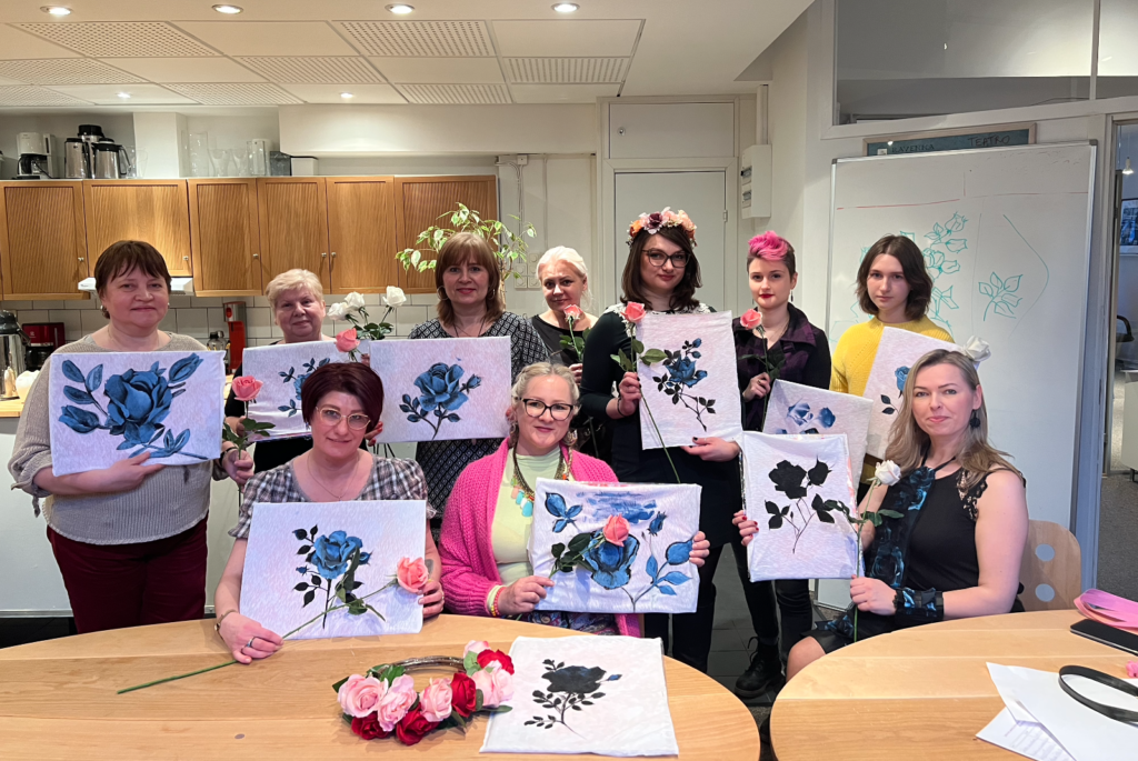 On 26th March, as a part of the Creative Waves – Baltic Sisterhood for Change project, Intercult (project leader) held a workshop with its artistic director – Halina Rosa. Participants of the event visited Intercult’s office at Södermalm in Stockholm to learn more about painting with traditional rose patterns on fabric.