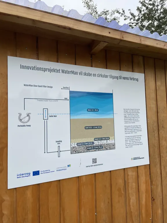 On the island of Bornholm, treated municipal wastewater from a wastewater treatment plant is purified using a slow sand filter (SSF) to make it suitable for the irrigation of agricultural land. An important component of this long-established filtration technology is what is referred to as a “biofilm”, a biological layer in the sand filter that contributes significantly to the reduction of microorganisms and the improvement of water quality. This layer must be removed, and the filter cleaned on a regular basis.