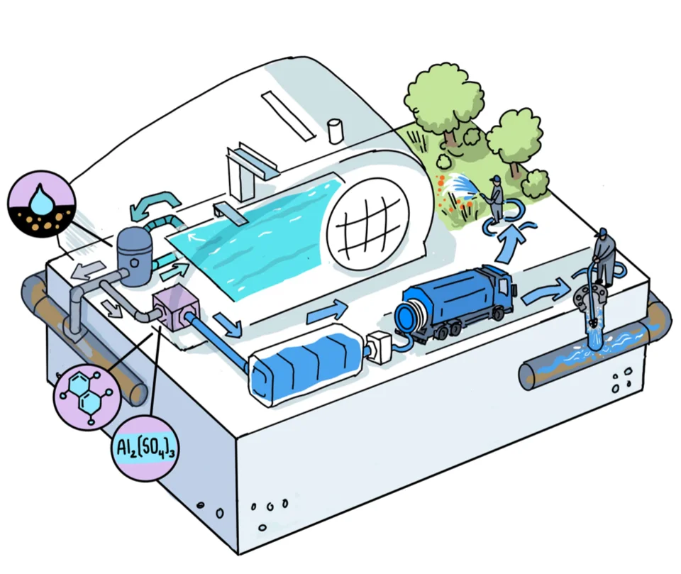 In Braniewo, Poland, water from the local indoor swimming pool is treated in a recirculation system so that, after several stages of purification, it can be used for municipal purposes, such as cleaning the sewage system. It is the swimming pool water used for the regular rinsing of the pool’s filter system. Up to 50% of the wastewater generated in the process can be reused. The closed-loop treatment of this water includes processes such as coagulation (flocculation), sedimentation as well as natural dechlorination and odour removal.