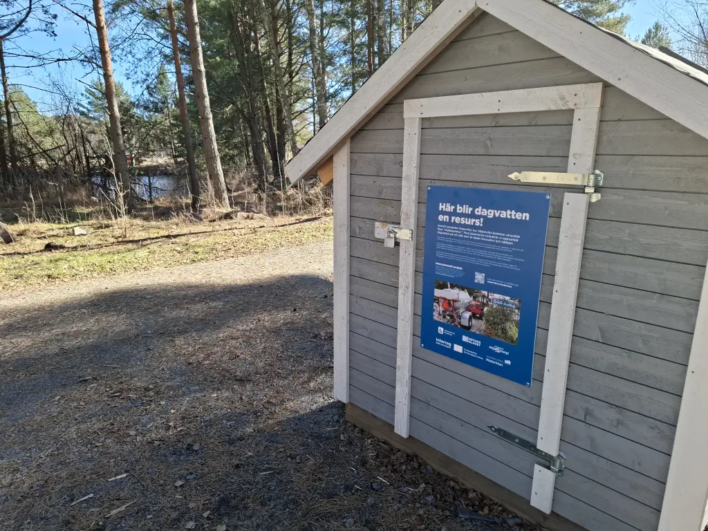 The starting point for the pilot measure in Västervik Municipality was a large multi-purpose pond in Gamleby, which collects surface runoff from a catchment area of 80 hectares. It helps prevent flooding and, by adding a tap point, provides water for various uses in the surrounding area, including the irrigation of football fields and plantations, as well as the production of artificial snow for cross-country ski trails. Maintaining the pond’s ecological balance supports natural purification processes, making it possible to use the water drawn from the pond directly.